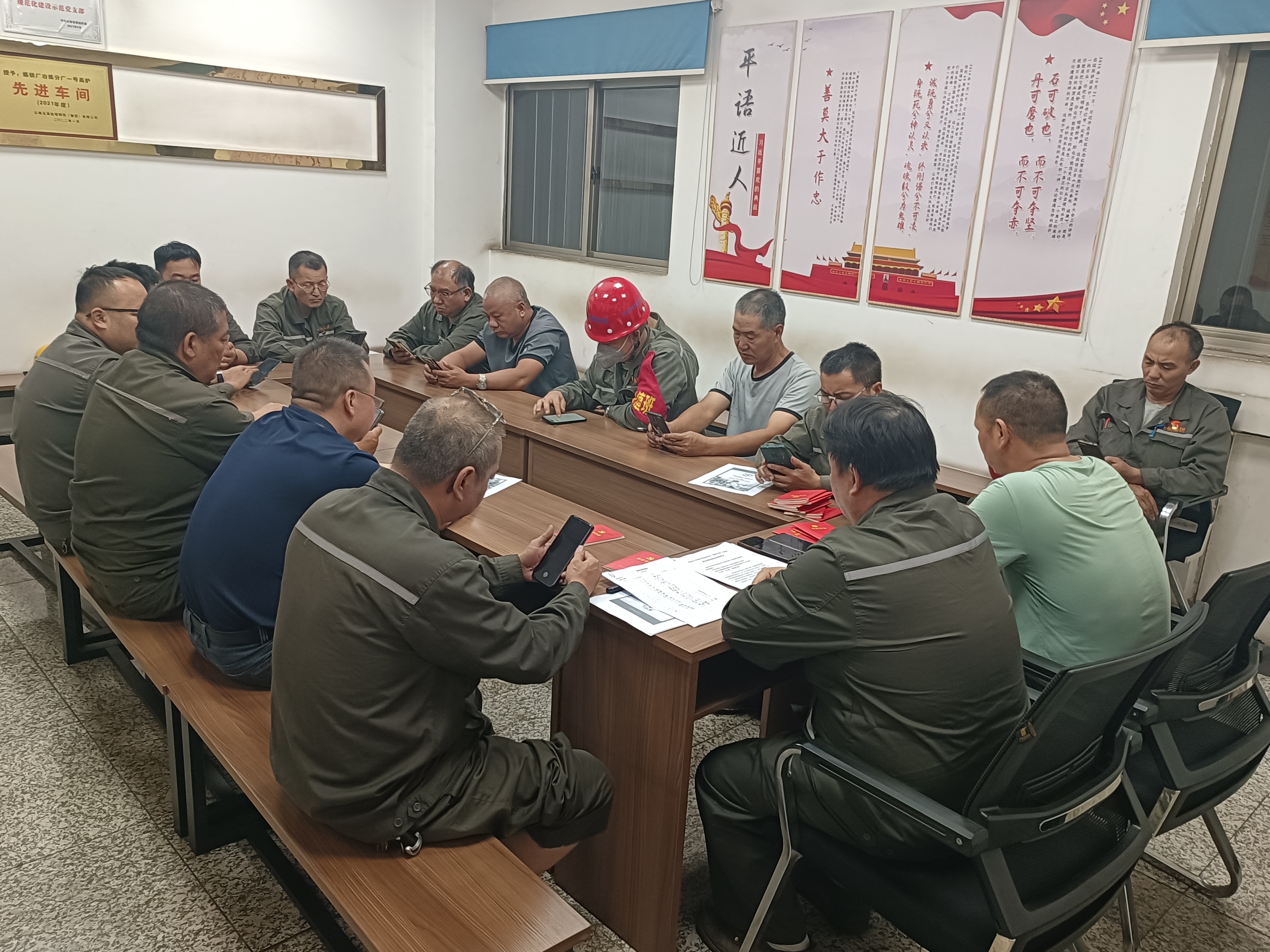 云南玉溪仙福鋼鐵(集團)有限公司第一黨支部于2025年5月14日下午16:00時在1號高爐主控樓四樓黨員活動室上二季度以《鑄牢中華民族共同體意識》為專題黨課,黨課由支部書記吳胚忠同志講授,參加黨課的黨員有15人。